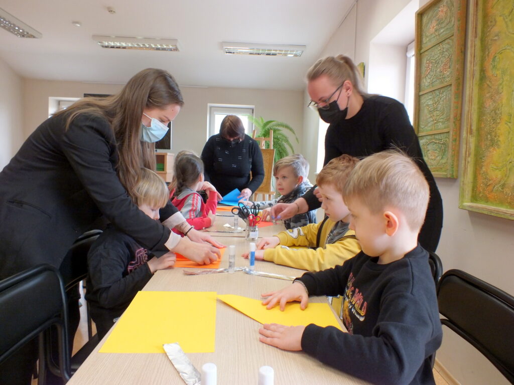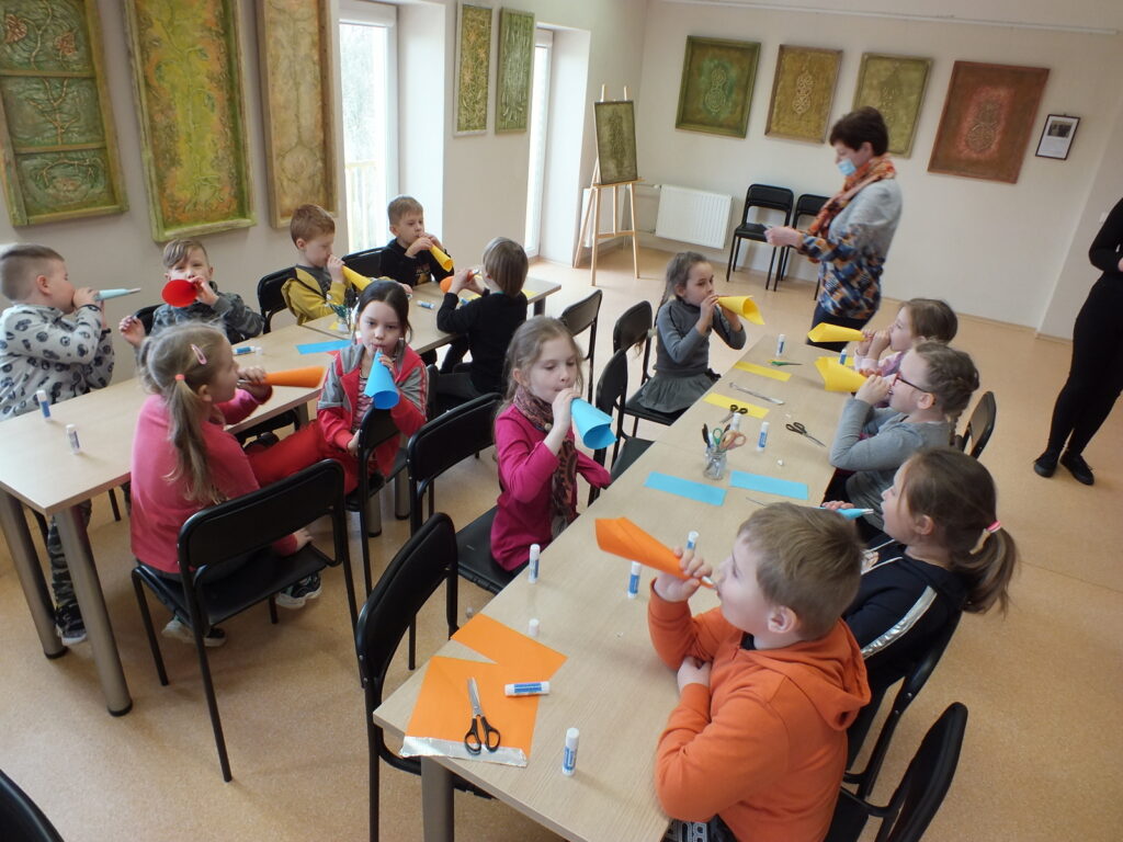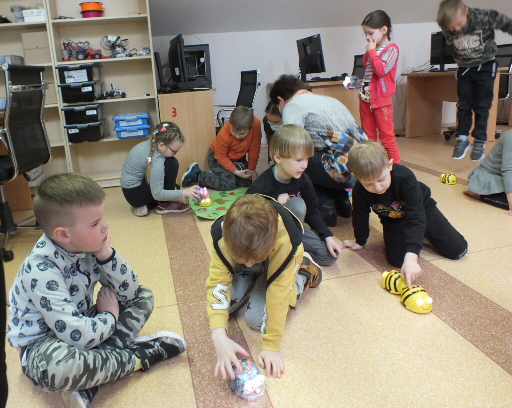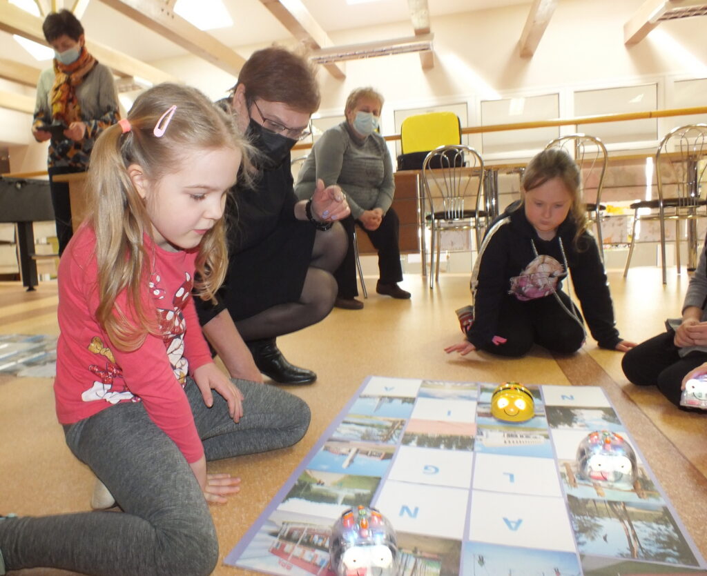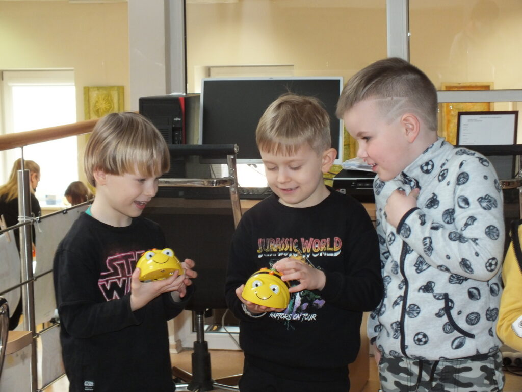 Vėliau vaikų laukė smagios popierinių dūdelių dirbtuvėlės, o renginio pabaigoje dar viena staigmena – bibliotekos Atradimų erdvėje įsikūrę edukaciniai robotukai-bitutės. Šis spalvingas, lengvai valdomas ir draugiškas mažasis robotukas, labai greitai vaikus įtraukė į kūrybinį procesą, mokytis informacinių technologijų įgūdžių žaidžiant.