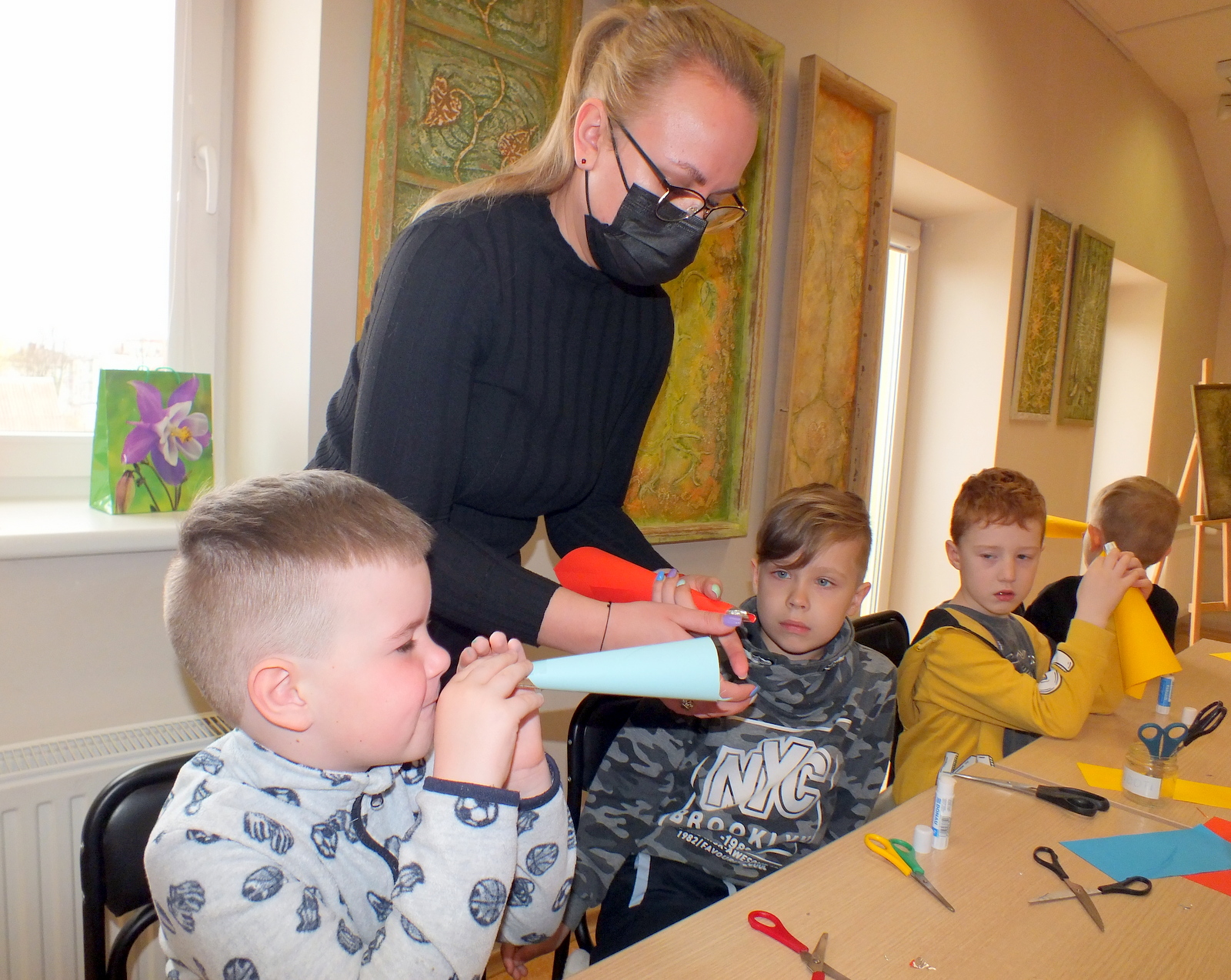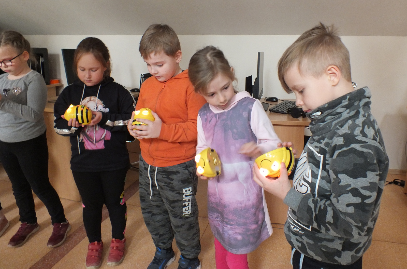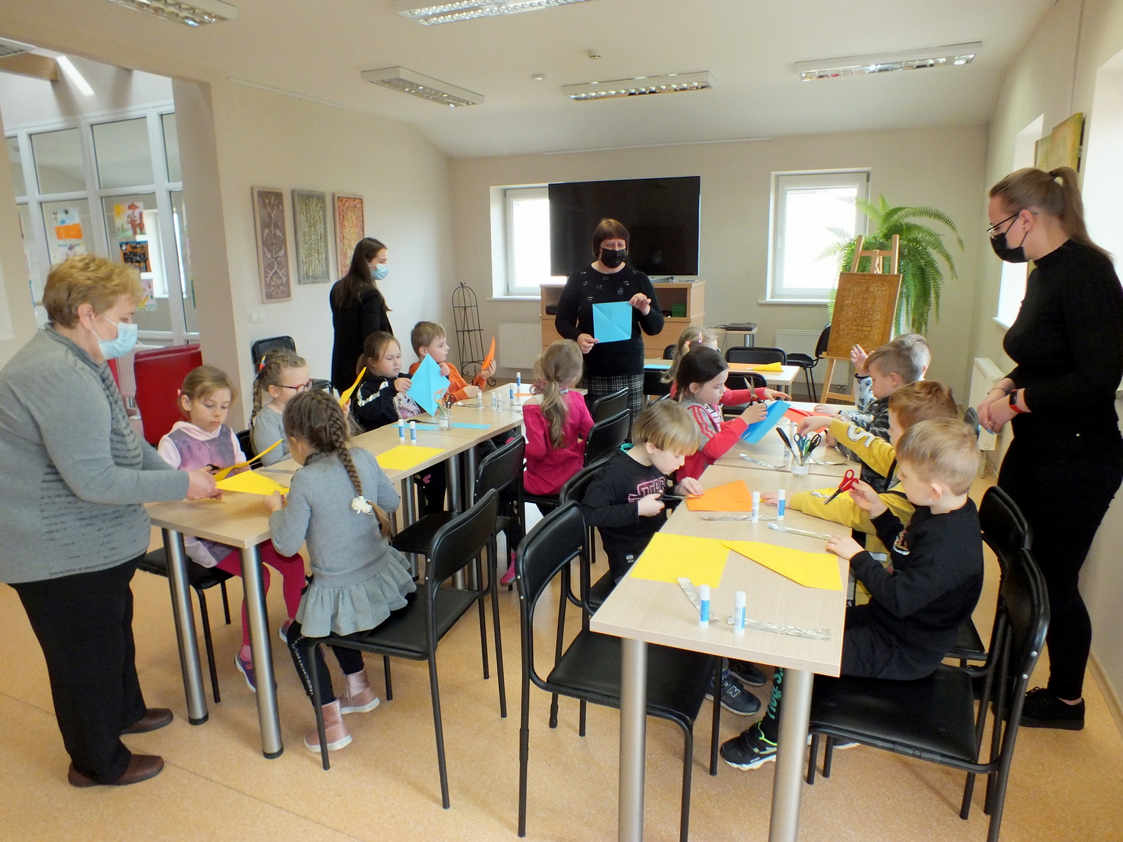 Vėliau vaikų laukė smagios popierinių dūdelių dirbtuvėlės, o renginio pabaigoje dar viena staigmena – bibliotekos Atradimų erdvėje įsikūrę edukaciniai robotukai-bitutės. Šis spalvingas, lengvai valdomas ir draugiškas mažasis robotukas, labai greitai vaikus įtraukė į kūrybinį procesą, mokytis informacinių technologijų įgūdžių žaidžiant.