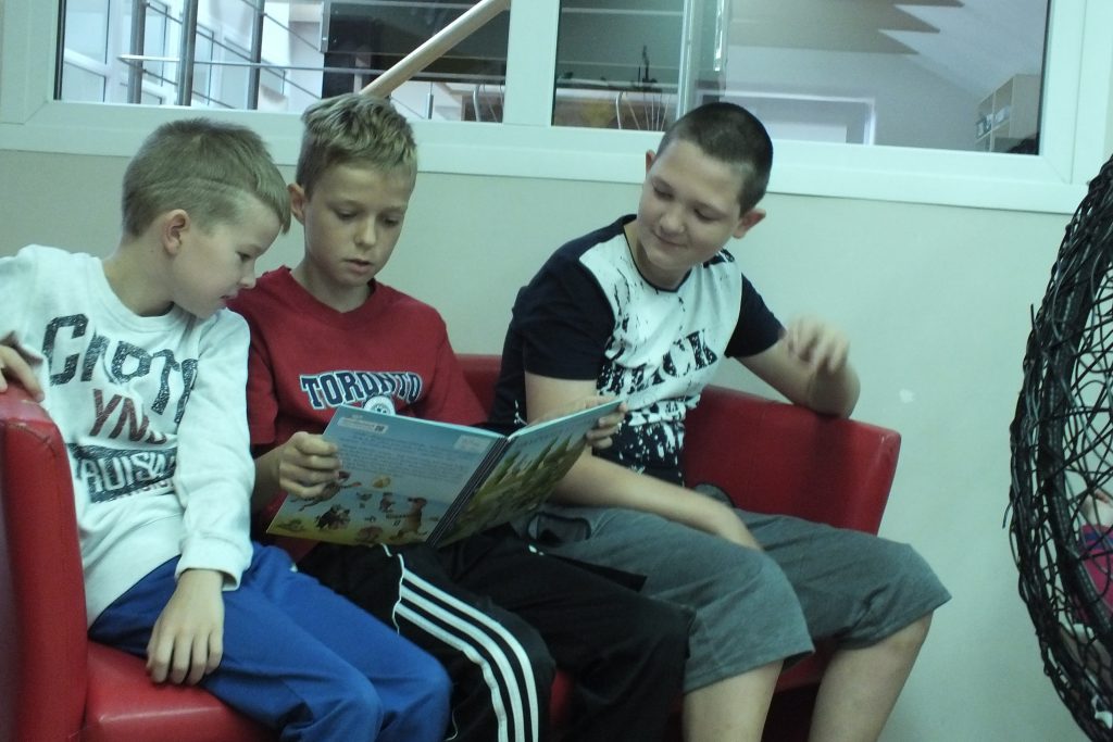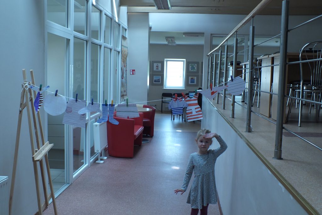 Rugpjūčio 7 dieną vaikai, susirinkę į garsinius skaitymus, susipažino ir skaitė dailininko, rašytojo Kęstučio Kasparavičiaus knygą „Dryžuota istorija“. Knygos herojė –dryžuotoji Zebriukė, pasimetė nuo mamos, bet, užuot išsigandusi, leidosi jos ieškoti. Paieškos kodas–dryžiai. Į biblioteką susirinkę vaikai perskaitė apie Zebriukės dryžuotus nuotykius, po skaitymų margino dryžuotus piešinėlius, kuriuos vėliau sukabino ant virvutės ir žaidė žaidimą. Virvutė buvo pakeliama arba nuleidžiama, vaikams reikėjo pralįsti neužkliudžius sukabintų piešinėlių. Po žaidimų, jaunieji skaitytojai atsisveikino su bibliotekininkėmis, nusiteikę kitą trečiadienį, vėl skaityti ir patirti naujų nuotykių.