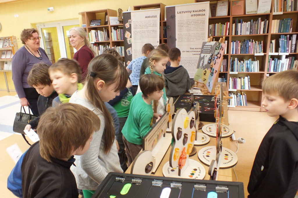 eksponuojamą edukacinę parodą „Paliesk lietuvių kalbą rankomis“. Mokiniams buvo
