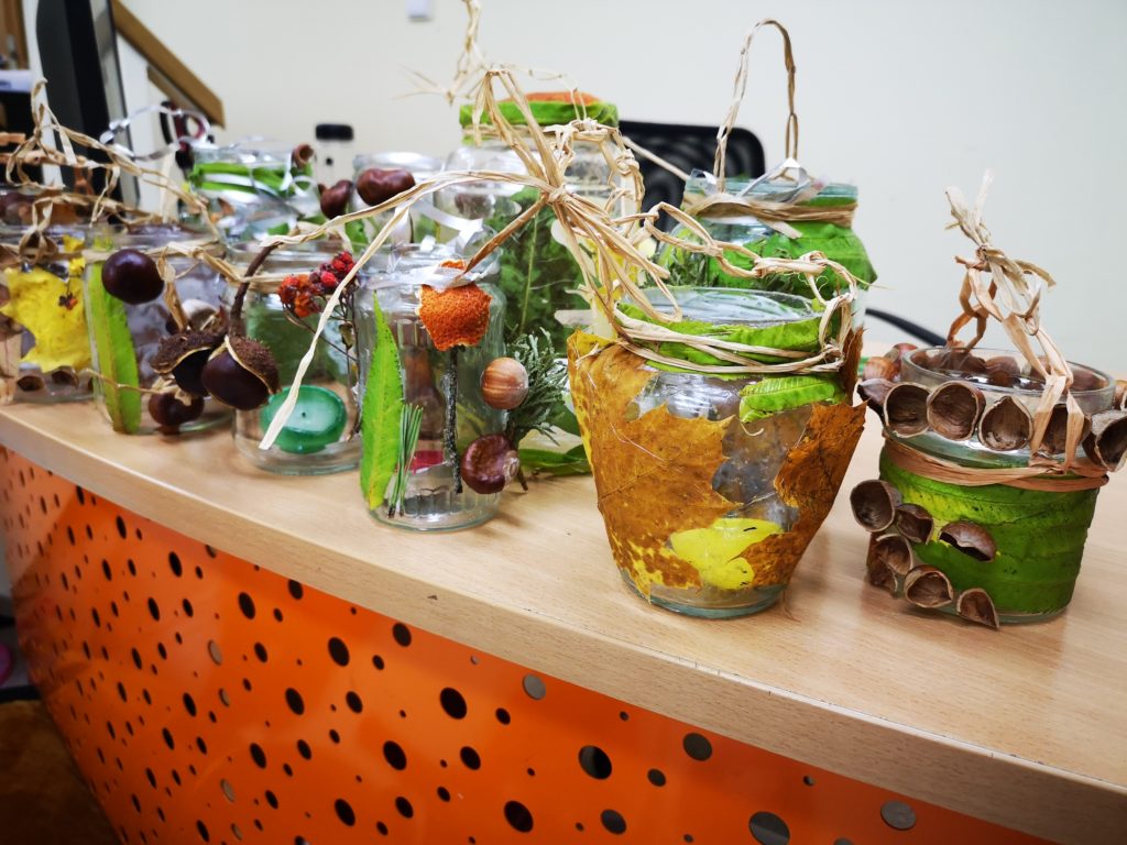 Spalio 16 d. Mažylių skaitykloje vyko kūrybinė edukacija „Rudenėlio žibintas“. Susirinkęs vaikų būrys rudeniniais lapais, kaštonais, riešutų lukštais, sudžiūvusiomis uogomis margino stiklainius. Kiekvienas žibintas tarsi meno kūrinys – vis kitoks ir vienas už kitą gražesnis. Vaikų rudenėlio žibintai papuoš Mažylių skaityklą ir nuotaikingoje aplinkoje lauks atkeliaujančios žiemos.