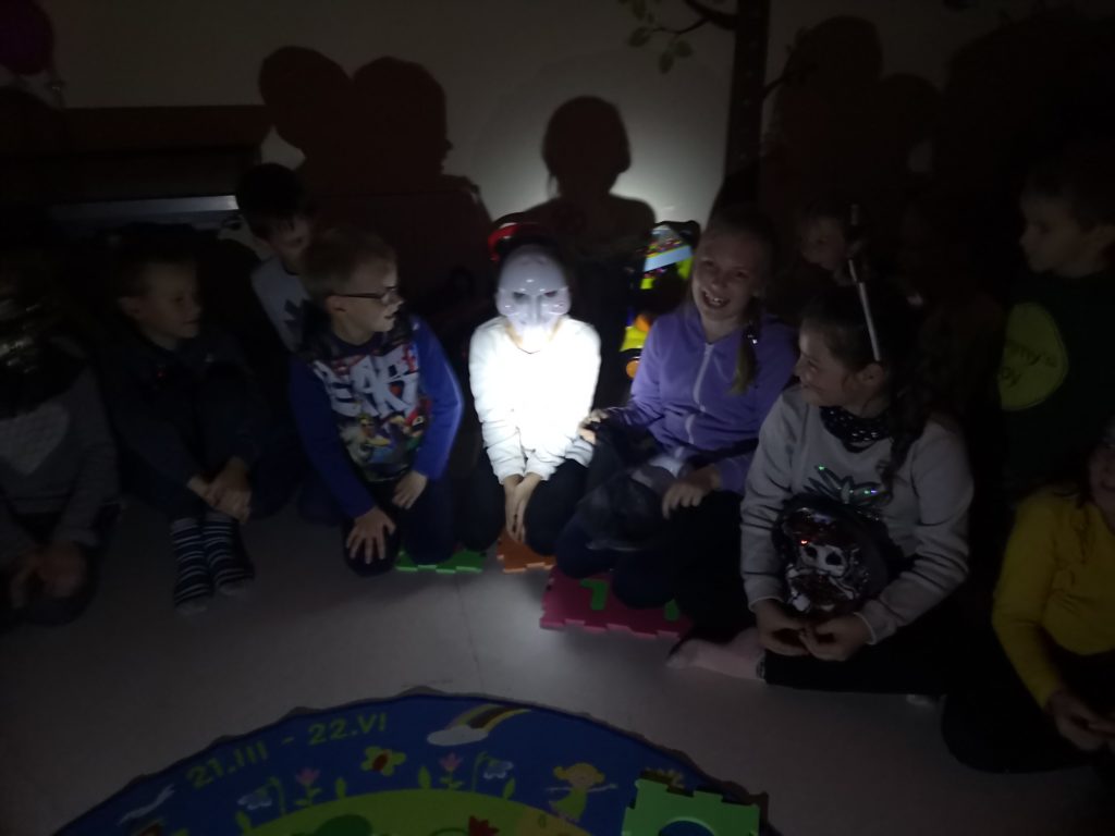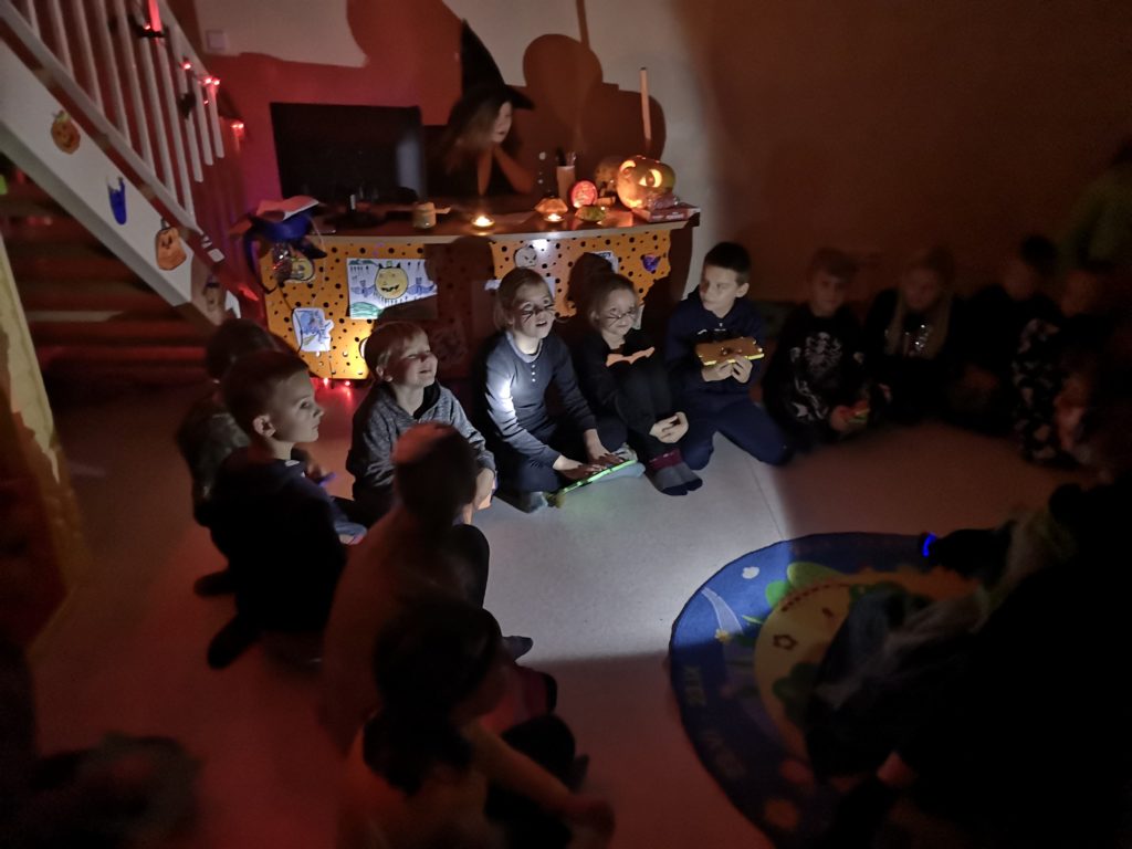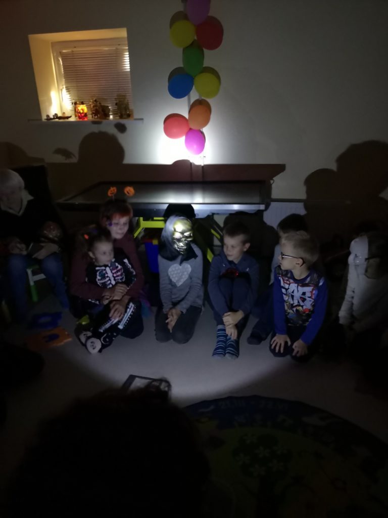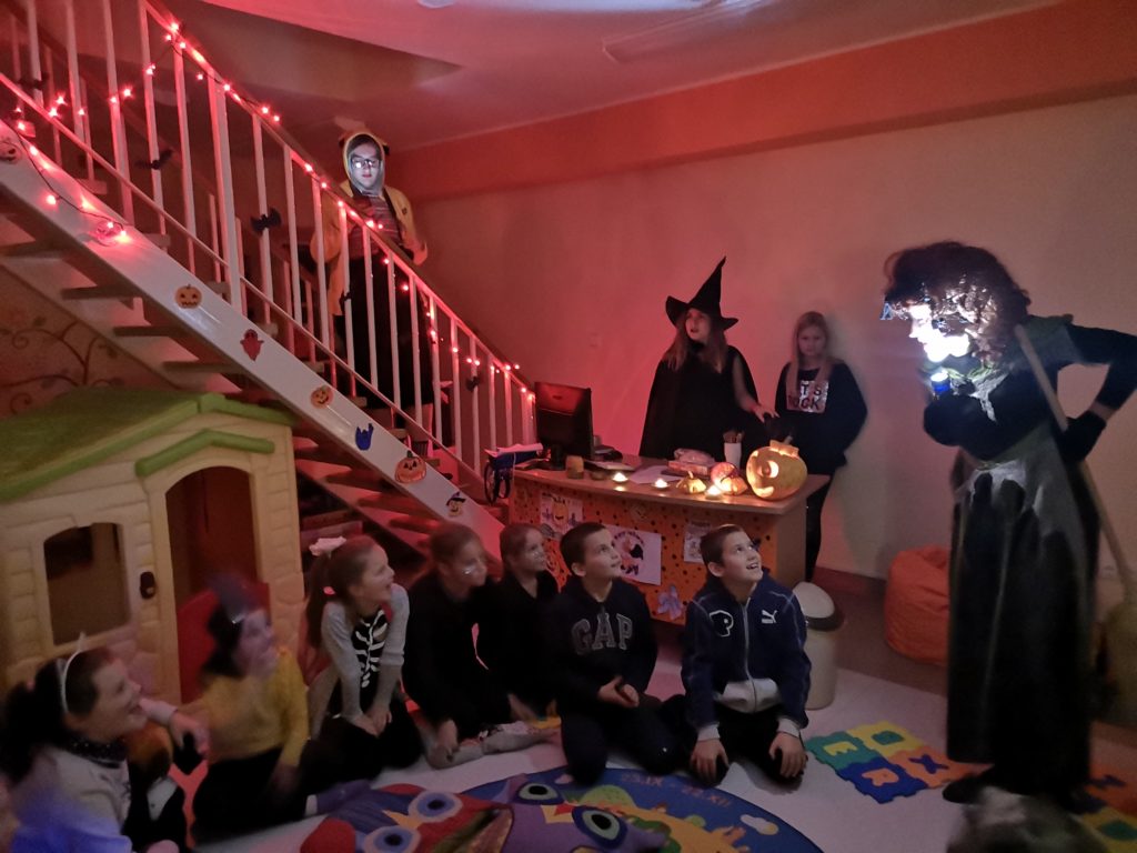 Spalio 30 dieną Mažylių skaitykloje taip pat paminėjome šią šventę, ją pavadinome „Baubuko vakaru“. Išpuošėme skaityklą vaiduokliais, šikšnosparniais, skaptuotais moliūgais, pasidabinome baisiausiais kostiumais. Šventės vedėja, Baubuko draugė ragana, atskriejusi ant savo stebuklingos šluotos, susipažino su būriu susirinkusiųjų ir pakvietė žaisti raganiškus žaidimus. Vaikai lankėsi Baubuko kambaryje, iš kurio išėję tapdavo nekalbiomis pabaisomis, ieškojo magiškos staigmenos, ragavo raganiškų patiekalų: saldžių siūlų ir džiovintų sliekų skanėstų, skaitė prognozes ir gamino magišką šlykštuką. Mažylių helovinas įvyko! Ir dar su trenksmu, nes tokio gausaus vaikų būrio viename renginyje Mažylių skaitykla dar nebuvo sulaukusi!!!