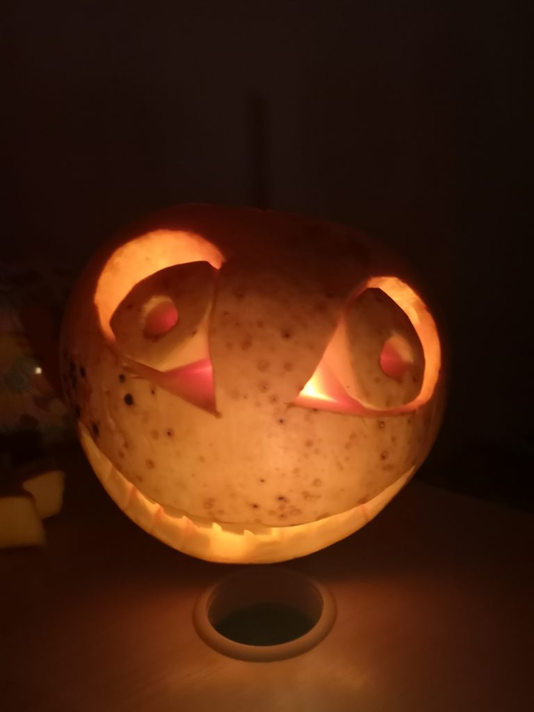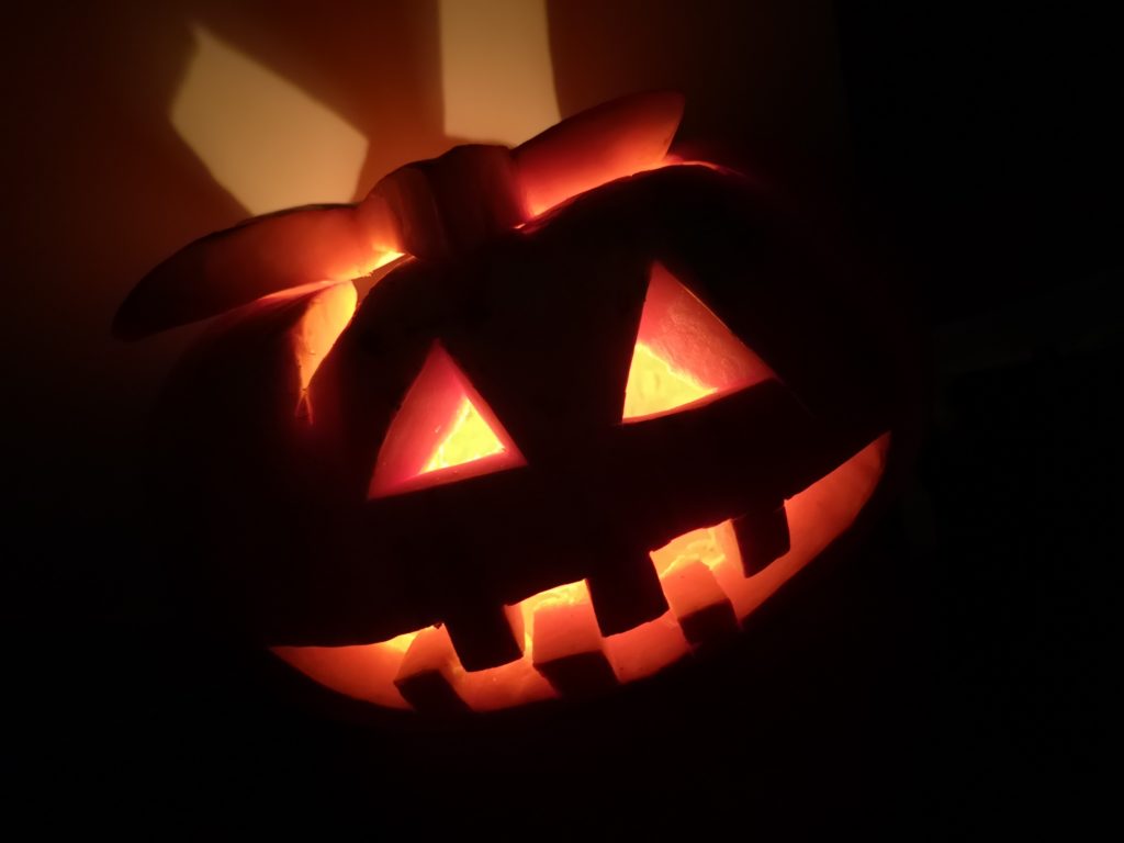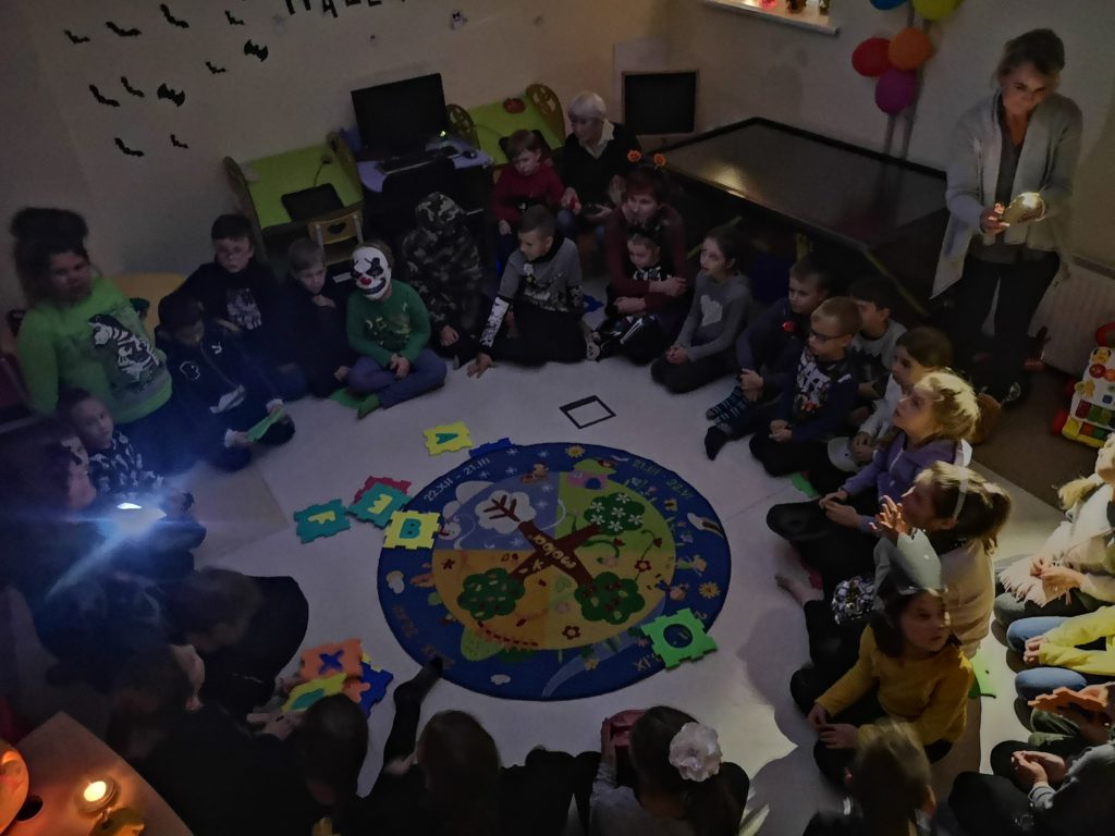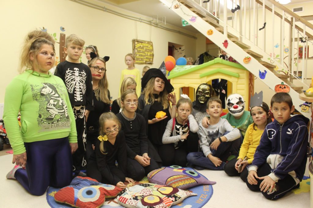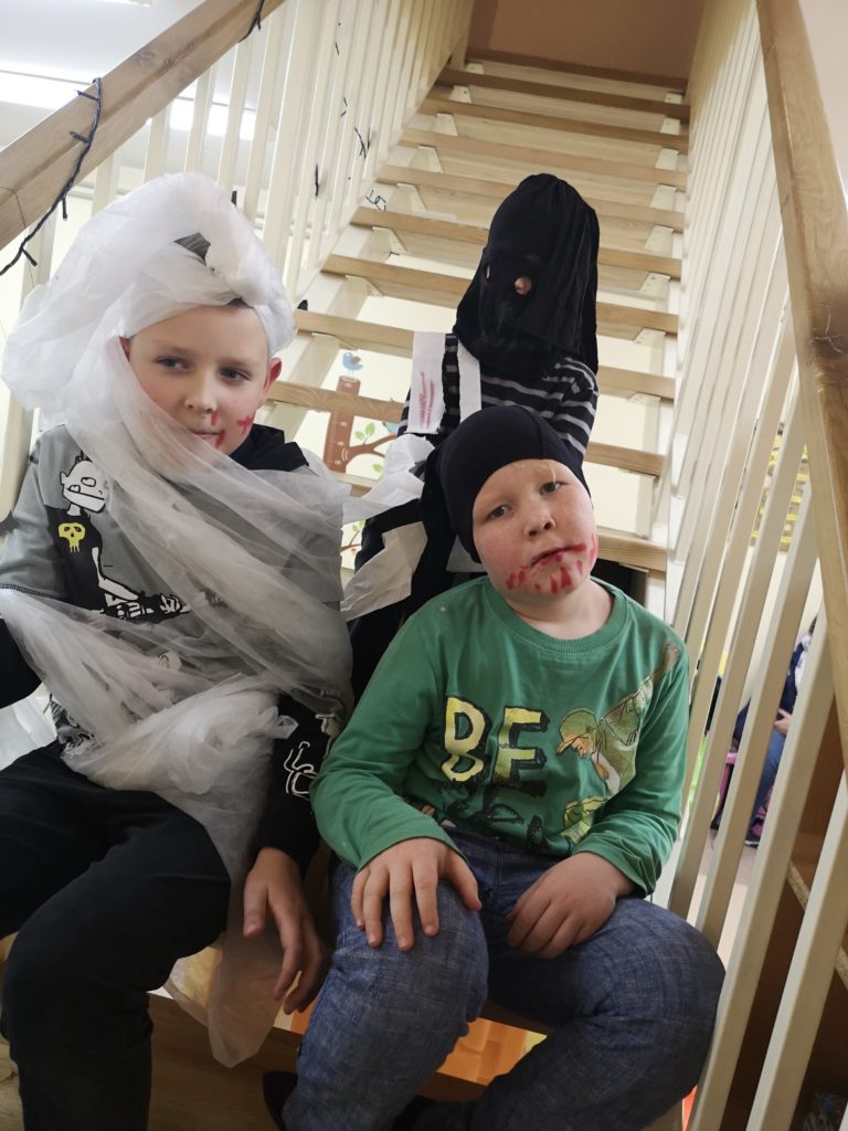 Spalio 30 dieną Mažylių skaitykloje taip pat paminėjome šią šventę, ją pavadinome „Baubuko vakaru“. Išpuošėme skaityklą vaiduokliais, šikšnosparniais, skaptuotais moliūgais, pasidabinome baisiausiais kostiumais. Šventės vedėja, Baubuko draugė ragana, atskriejusi ant savo stebuklingos šluotos, susipažino su būriu susirinkusiųjų ir pakvietė žaisti raganiškus žaidimus. Vaikai lankėsi Baubuko kambaryje, iš kurio išėję tapdavo nekalbiomis pabaisomis, ieškojo magiškos staigmenos, ragavo raganiškų patiekalų: saldžių siūlų ir džiovintų sliekų skanėstų, skaitė prognozes ir gamino magišką šlykštuką. Mažylių helovinas įvyko! Ir dar su trenksmu, nes tokio gausaus vaikų būrio viename renginyje Mažylių skaitykla dar nebuvo sulaukusi!!!