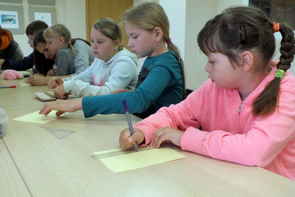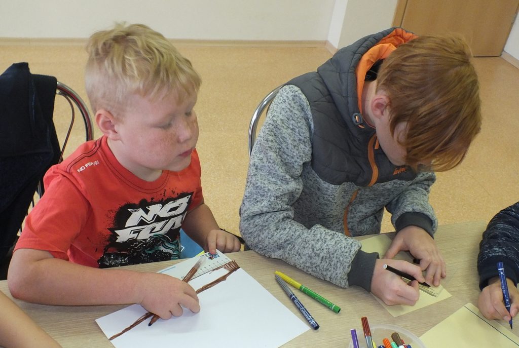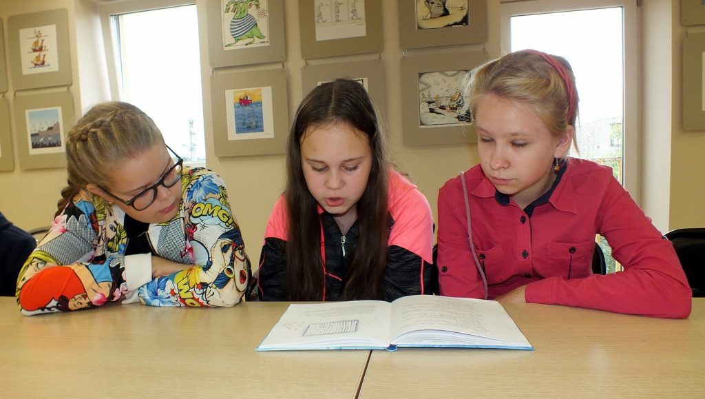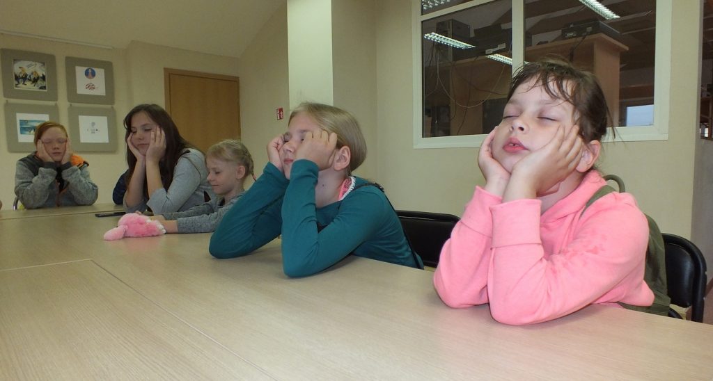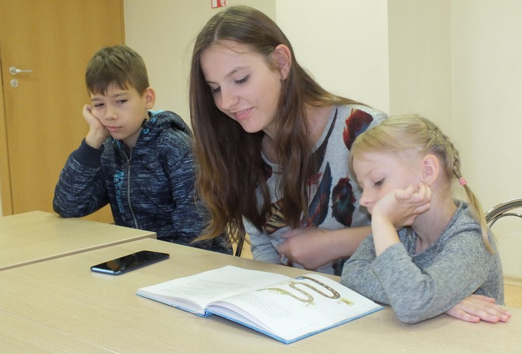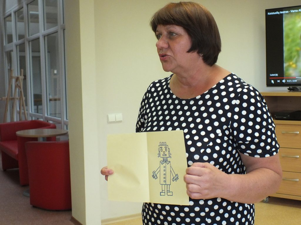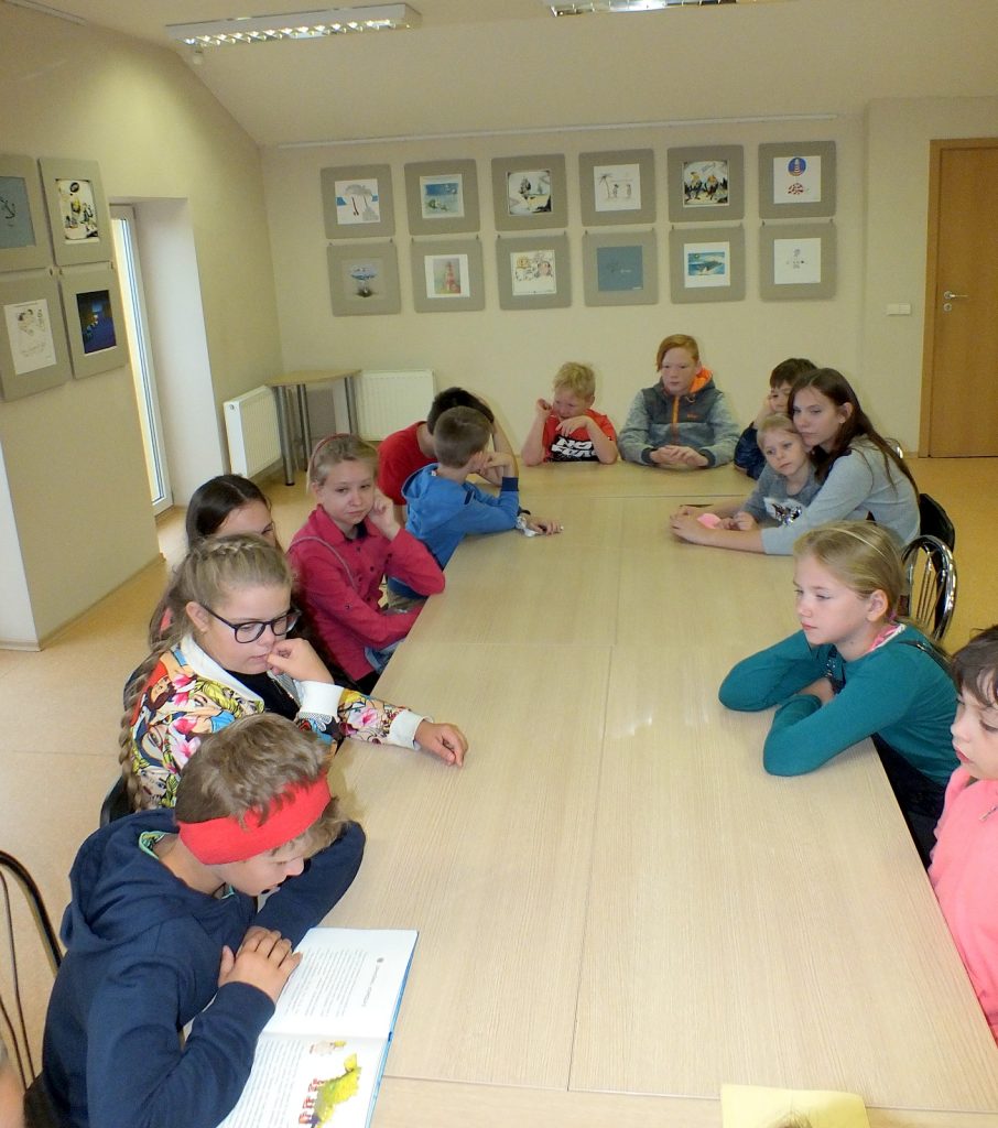 Kai už lango lyja lietutis, Vaikų literatūros skyriuje jauku, gera ir smagu. Liepos 10 dieną čia susirinkę vaikai skaitė Donaldo Bisseto  knygutę „Aukštyn kojom“, kurią iliustravo Sigutė Ach. Knygutė iškart patraukė vaikų dėmesį savo spalvotu  viršeliu, piešiniais. O kokios istorijos joje slepiasi… Ar teko kada girdėti apie varną vardu Albertina, kuri užmigo aukštyn kojom ir susapnavo keistą sapną. Pelės vaikosi katę, katė šunį, pienininkas traukia vežimą, arklys sėdi ant sėdynės ir vyksta  dar daug visokių keistų dalykų. Užmerkę akis vaikai pabandė įsivaizduoti, kad sapnuoja sapną, kuriame viskas atvirkščiai. Kamilė sugalvojo, kad  vaikai mokykloje mokosi keturis mėnesius o visą kitą laiką atostogauja, Rokas – kad mokykloje vietoj direktoriaus sėdi voras. Buvo labai linksma. Vėliau vaikai skaitė kitas šios knygelės  istorijas apie tai, kaip atsiranda vingiuotas kelias, apie arklį ir tigrą, kurie gyveno po kilimu. Pasiklausę istorijos apie pieštuko ir liniuotės draugystę, vaikai piešė tiesių linijų piešinius, skaičiavo kas tų linijų nubrėžė daugiau. Linijų buvo tiek daug, kad neužteko net laiko visas suskaičiuoti, o laukė dar smagus žaidimas, linksma Keistuoliu teatro dainelė apie varną Albertiną.
